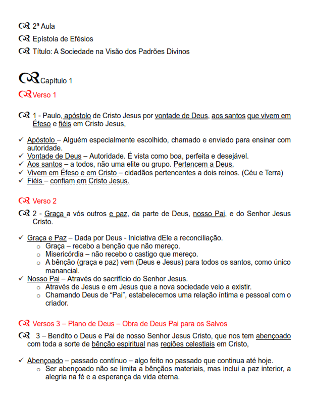 - Propósitos de Deus para a vida da Igreja como membro do corpo de Cristo, onde Cristo é o Cabeça.